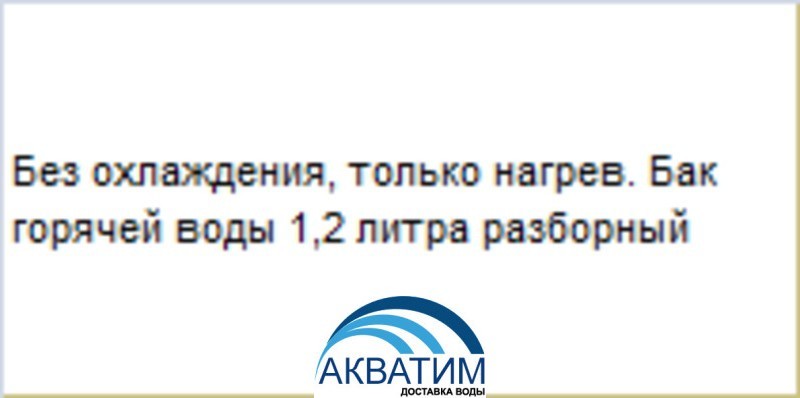 1 годБез охлаждения, только нагрев. Бак горячей воды 1,2 литра разборный